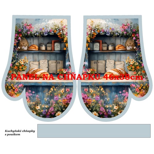 Pokud něco potřebujete, volejte :-)Autorské panely na chňapky - velikost celého panelu je 46x38cm, délka rukavice je 29,8cm