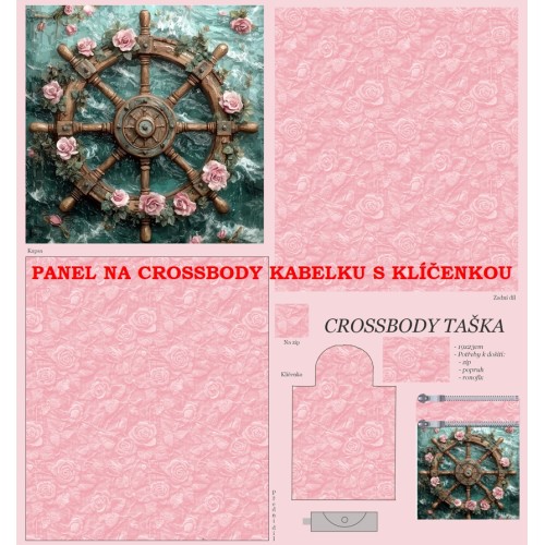 Autorské panely na ušití crossbody kabelky s klíčenkou