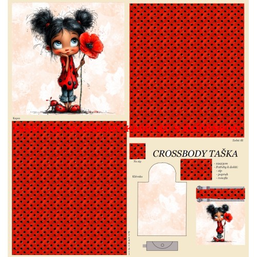 Autorské panely na ušití crossbody kabelky s klíčenkou