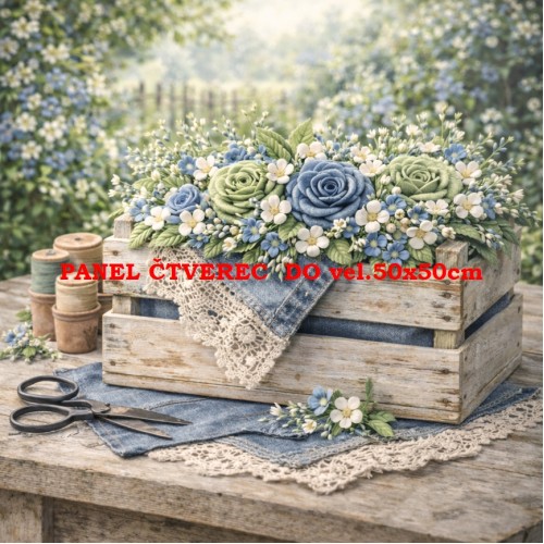 • Látkový panel  kolekce DENIM  GARDEN – SHABBY  COTTAGE  614-482