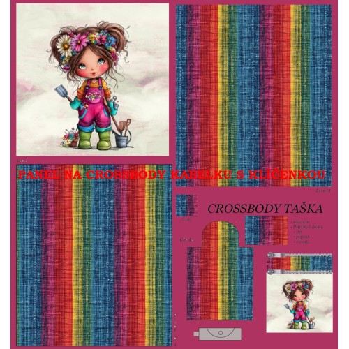 Autorské panely na ušití crossbody kabelky s klíčenkou